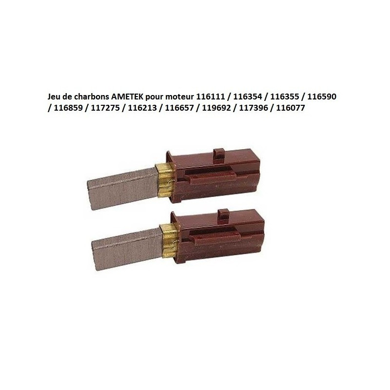 Deux charbons pour moteur AMETEK 116111 / 116354 / 116355 / 116590 / 116859 / 117275 / 116213 / 116657 / 119692 / 117396 / 116077 / 119656