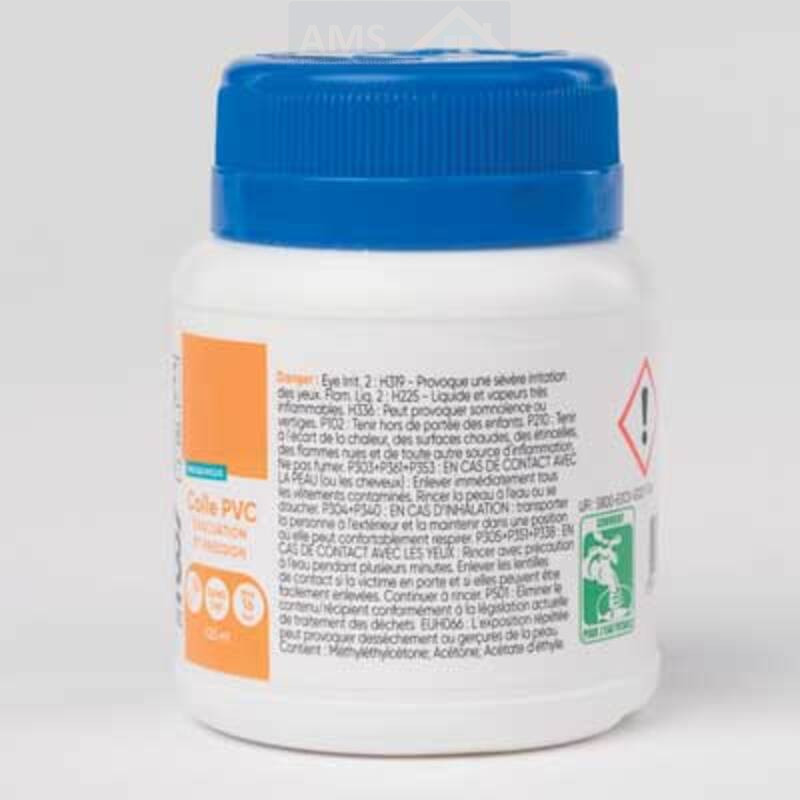 Pot de colle de 250ml pour TUBE PVC BLANC SPÉCIAL ASPIRATION CENTRALISÉE, livré avec un pinceau pour une application facile.